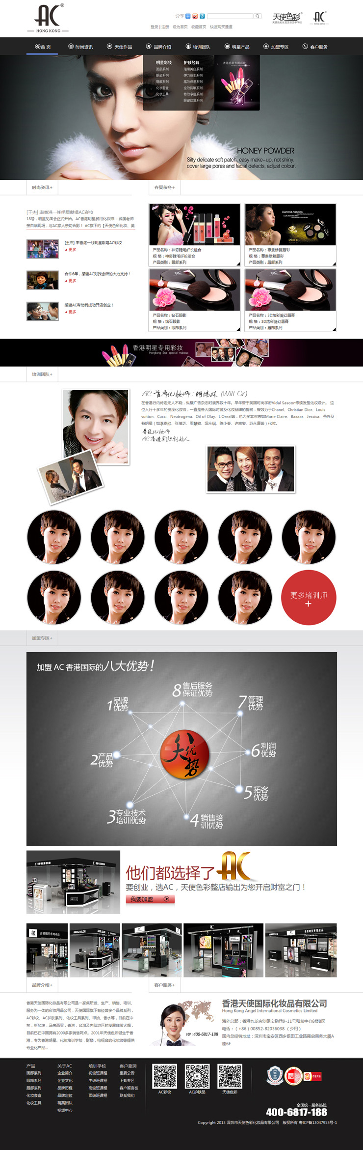 香港天使國(guó)際化妝品有限公司是一家集研發(fā)、生產(chǎn)、銷售、培訓(xùn)、服務(wù)為一體的彩妝用品公司,天使國(guó)際旗下有經(jīng)營(yíng)多個(gè)品牌系列,AC彩妝、AC護(hù)膚系列、化妝工具系列、甲油、香水等,目前在中東,新加坡,馬來(lái)西亞,香港,臺(tái)灣及內(nèi)陸地區(qū)的發(fā)展非?;鸨壳耙言谥袊?guó)擁有2000多家銷售網(wǎng)點(diǎn)。