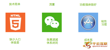 優(yōu)勢:開發(fā)技術簡單,研發(fā)周期短,微信可以帶來流量和用戶